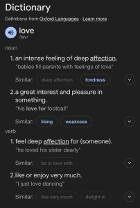 The actual definition of Love is vague as fuck. When reading it… it doesn’t really represent what unconditional-true blue- over the moon- Love is does it?